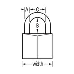 Shackle Dimensions: A: 6mm, B: 22mm, C: 21mm (Look Image)