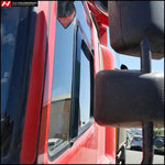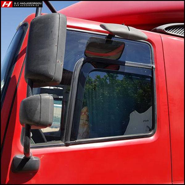 Wind deflectors allow the air to circulate in the truck while protecting the driver from wind and rain.