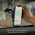 Μια βάση κινητού αυτοκινήτου που είναι κατάλληλη για συσκευές έως 6 ίντσες και περιστρέφεται 360°.