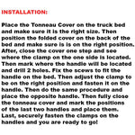 Προσοχή: Βεβαιωθείτε ότι δεν υπάρχουν σωλήνες, κλουβιά κυνηγετικών σκύλων η οτιδήποτε που θα εμποδίζει τον μουσαμά. Εάν το φορτηγό σας έχει σωλήνες, βεβαιωθείτε ότι έχουν σχεδιαστεί για να τοποθετούντε μαζί με Tri-Fold (πρέπει να έχουν κανάλι με χώρο κάτω από αυτά).