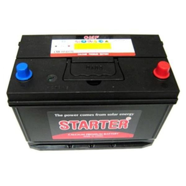 STARTER brand maintenace-free CMF12V 90AH, made by Solite in Korea, with [- +] terminals and 750A CCA (SAE).
